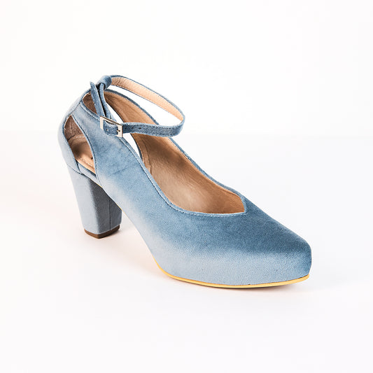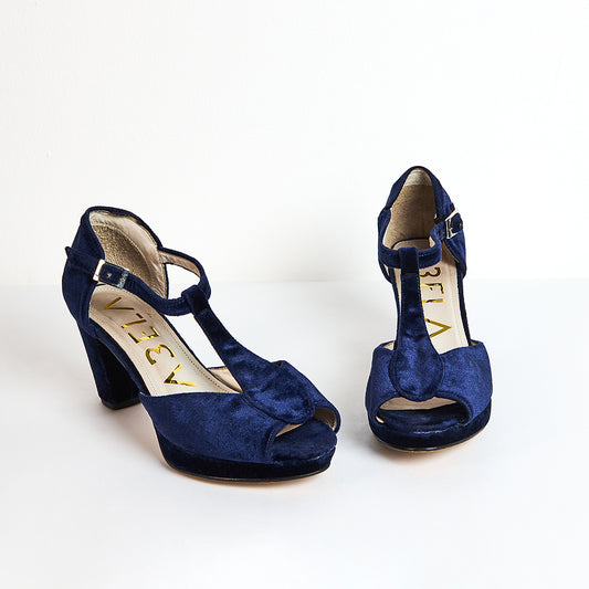 Tacones Dina Cruzado Terciopelo Azul - Talla 36