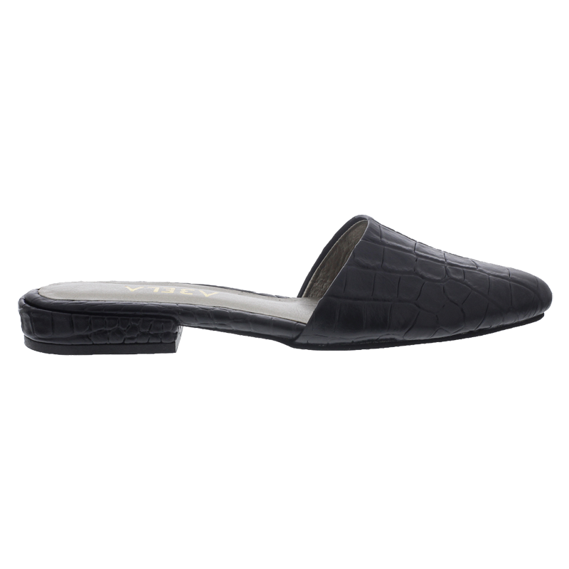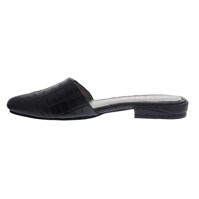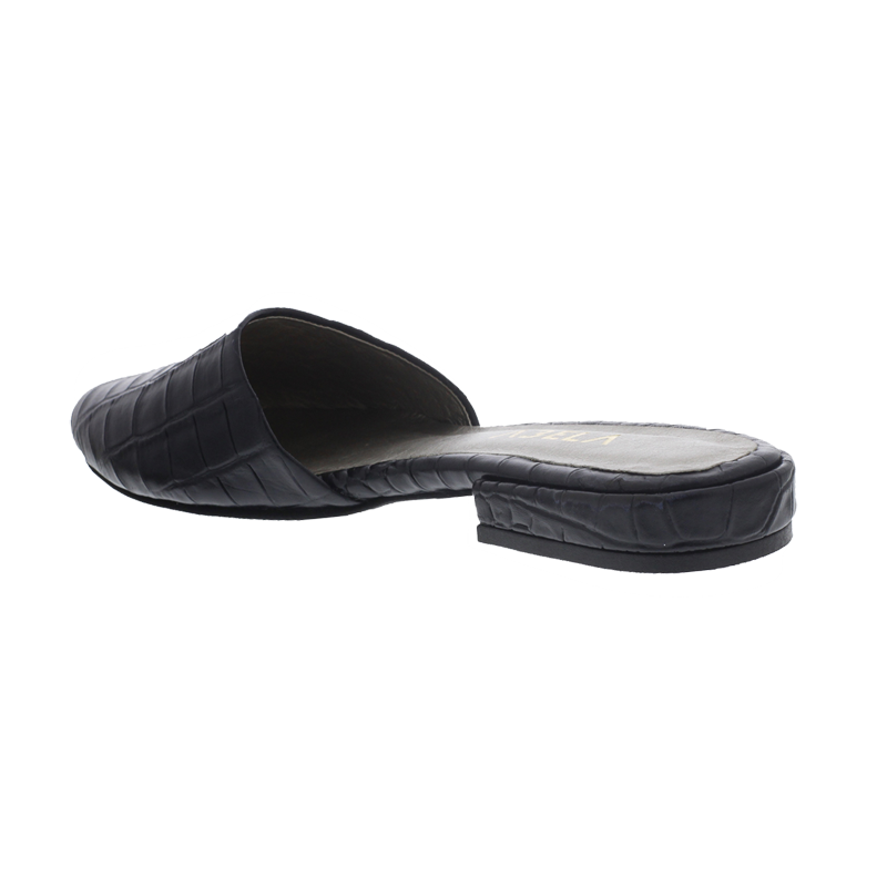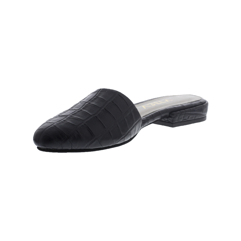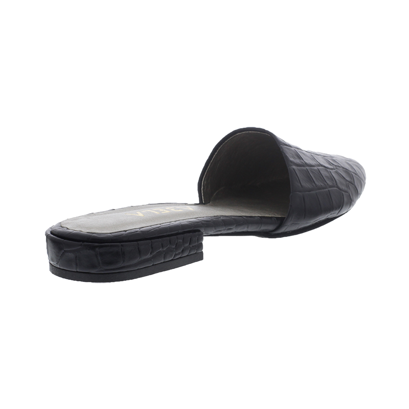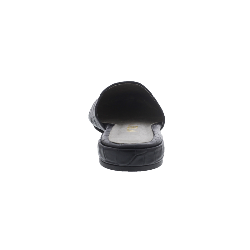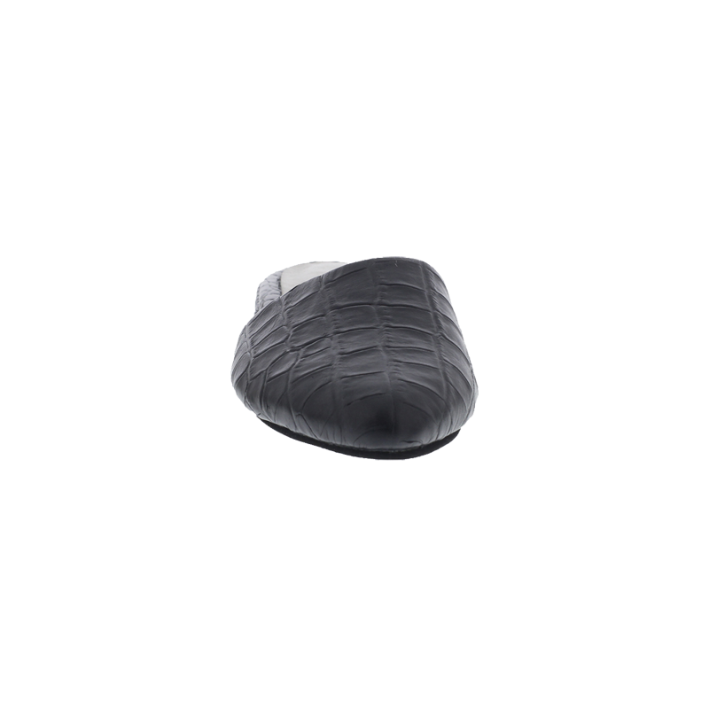 Baletas tipo sueco, en cuero negro con print de armadillo y tacón de 1.5cm