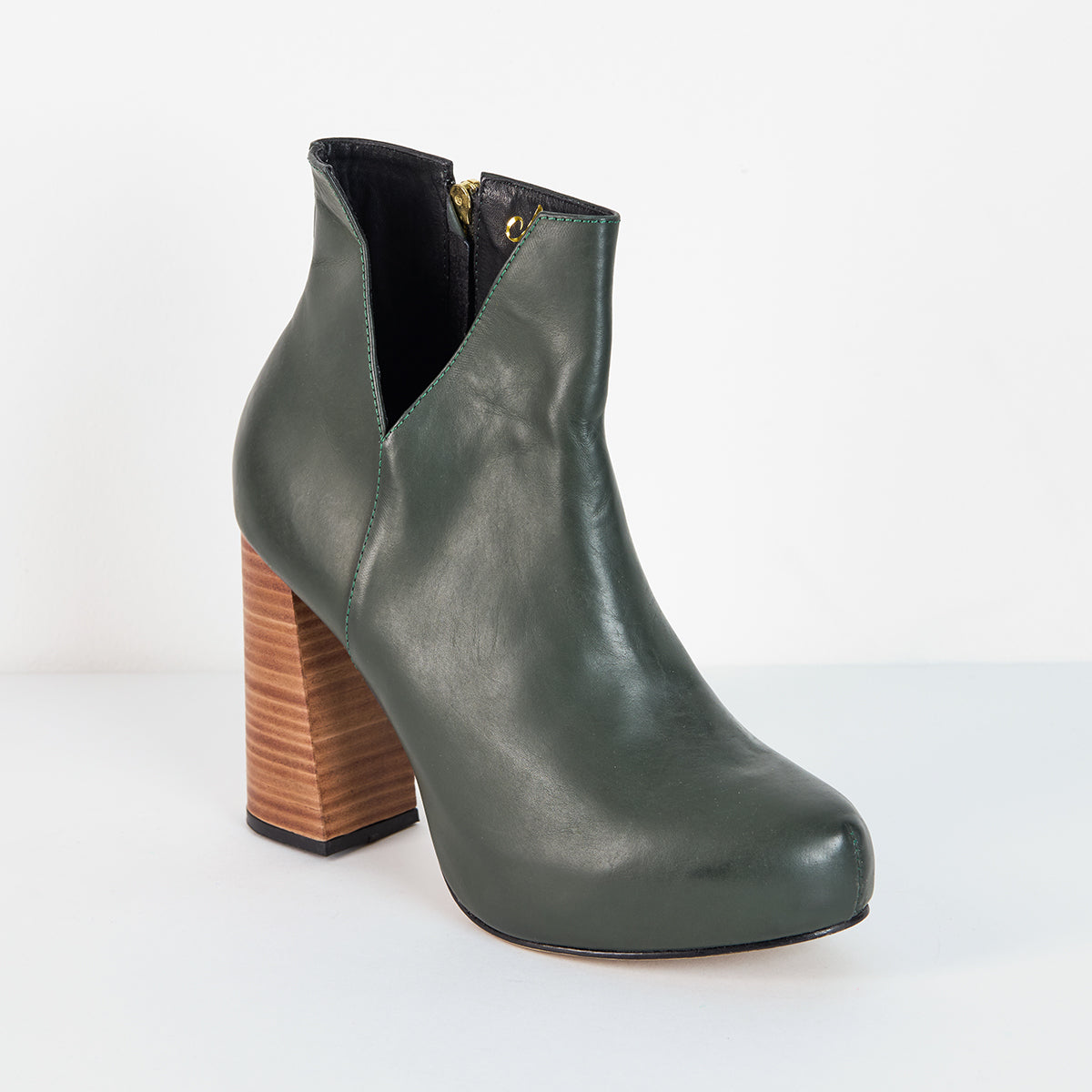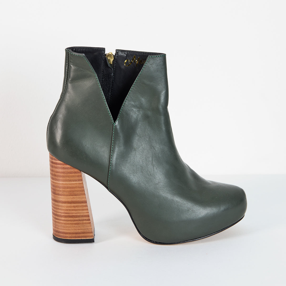 AAAALTOS ankle boots so that in addition to feeling super tall, you feel super comfortable. In our original version, we combine it in military green leather with a wooden heel.