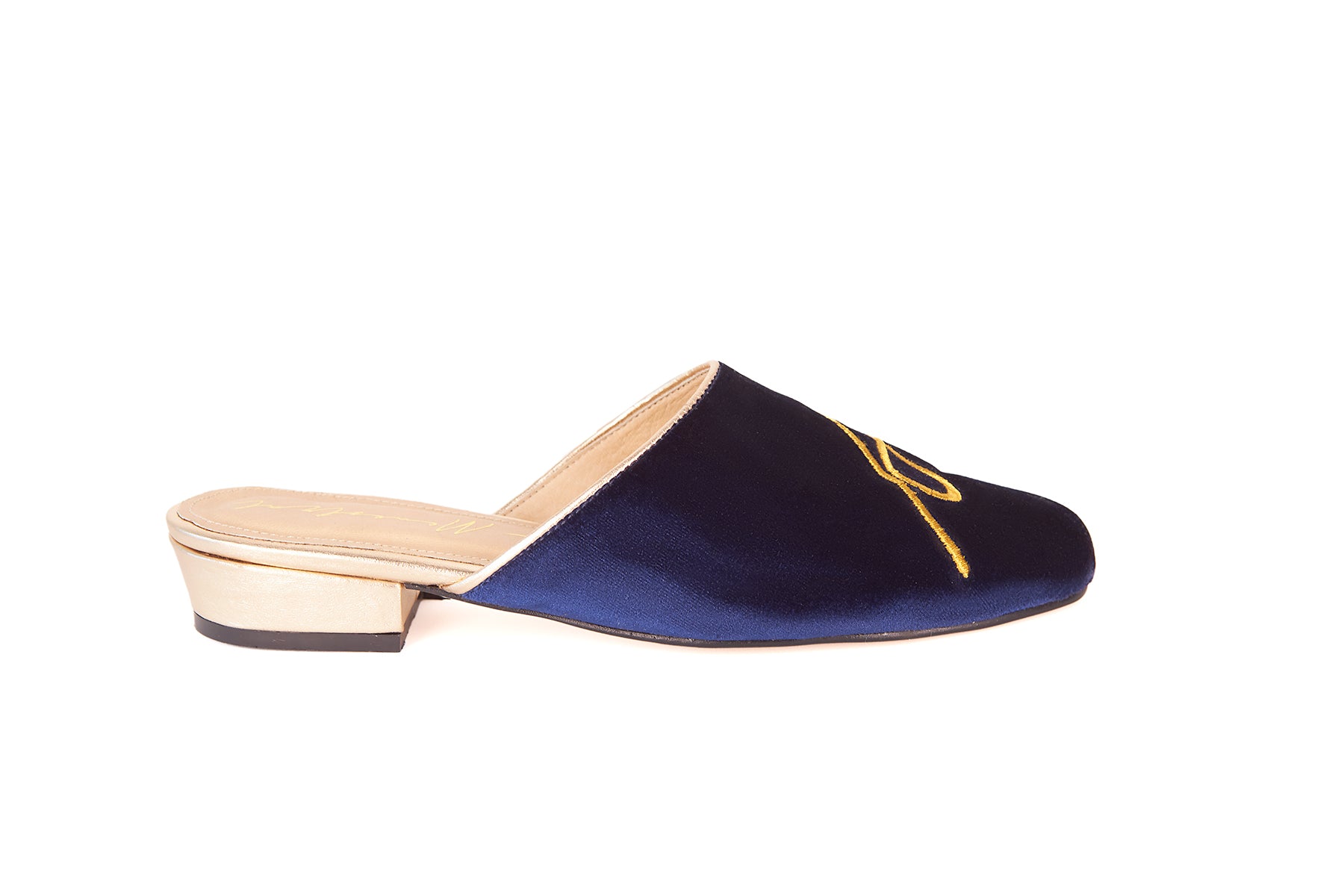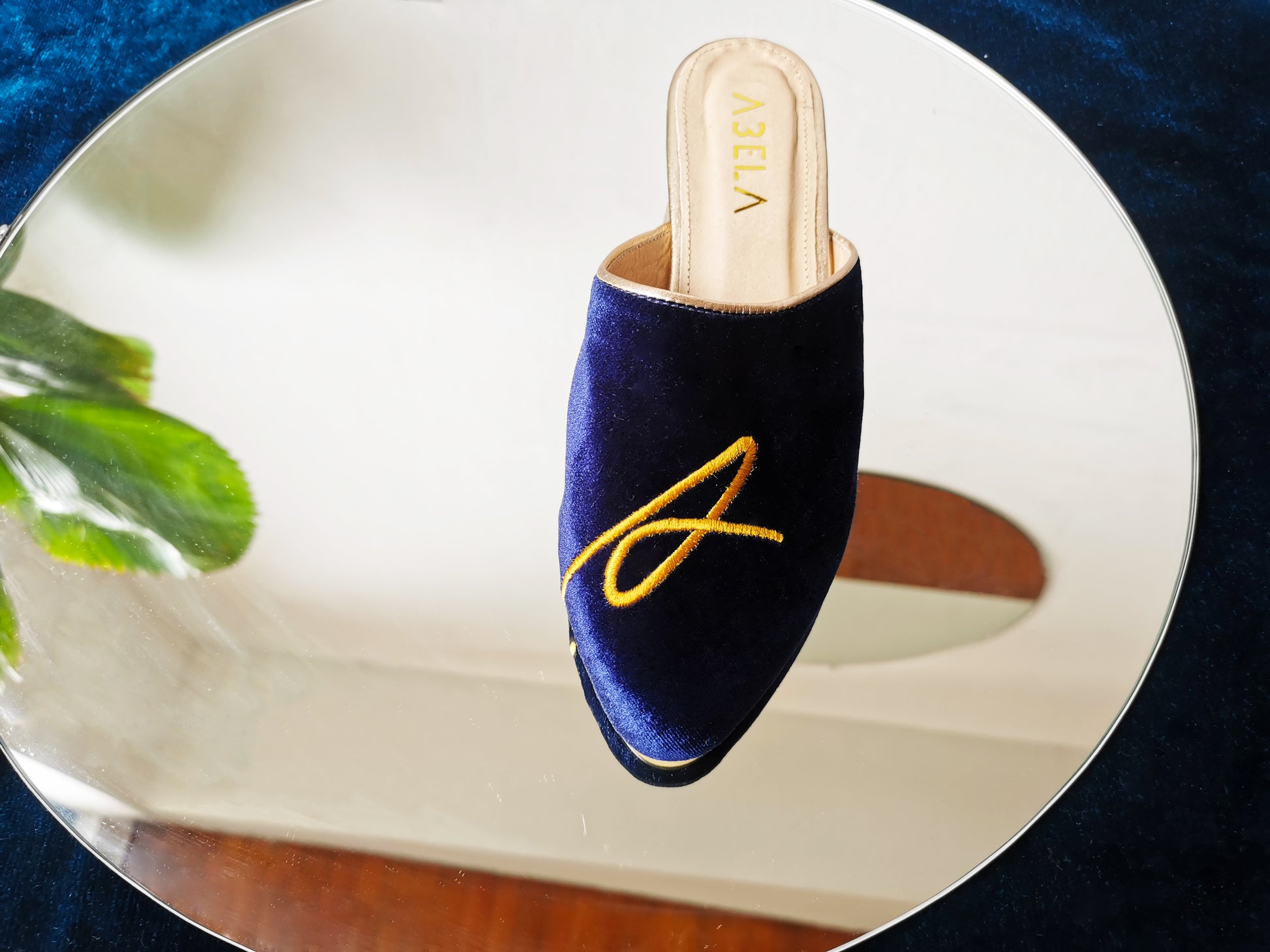Para esos días, nada, NADA mejor que unos zapatos destalonados (o suecos o mules) que te saquen de apuros en cuestión de segundos. Por eso nuestros mules aristas en terciopelo azul y con un bordado en forma de A son perfectos para irte de shopping o salir a almorzar en domingo a un lugar campestre donde la comodidad es principal.