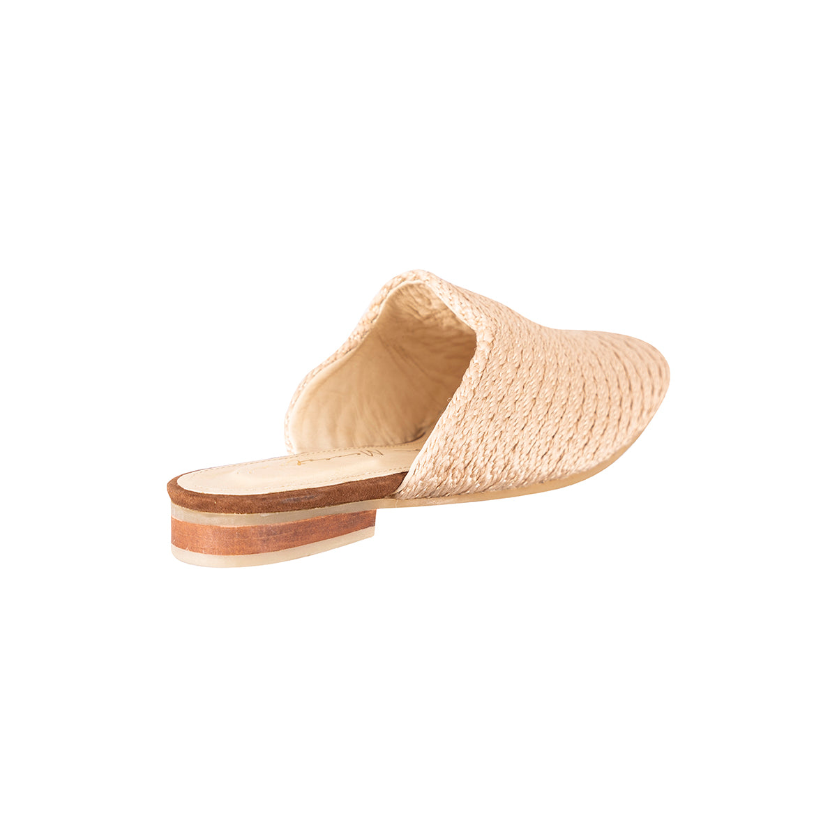 Mules en yute de fibra natural, destalonados, y forrados en gamuza miel en la plantilla.