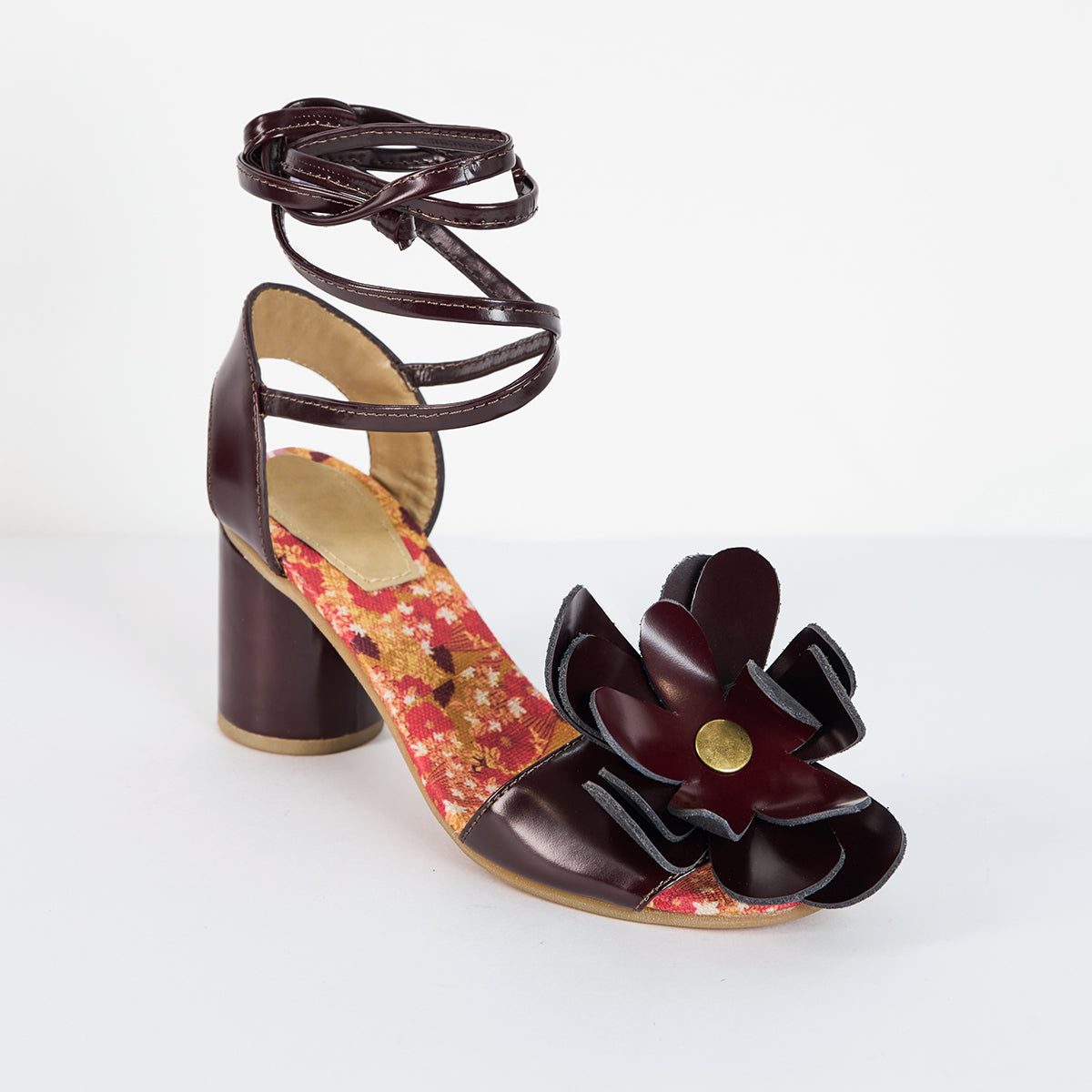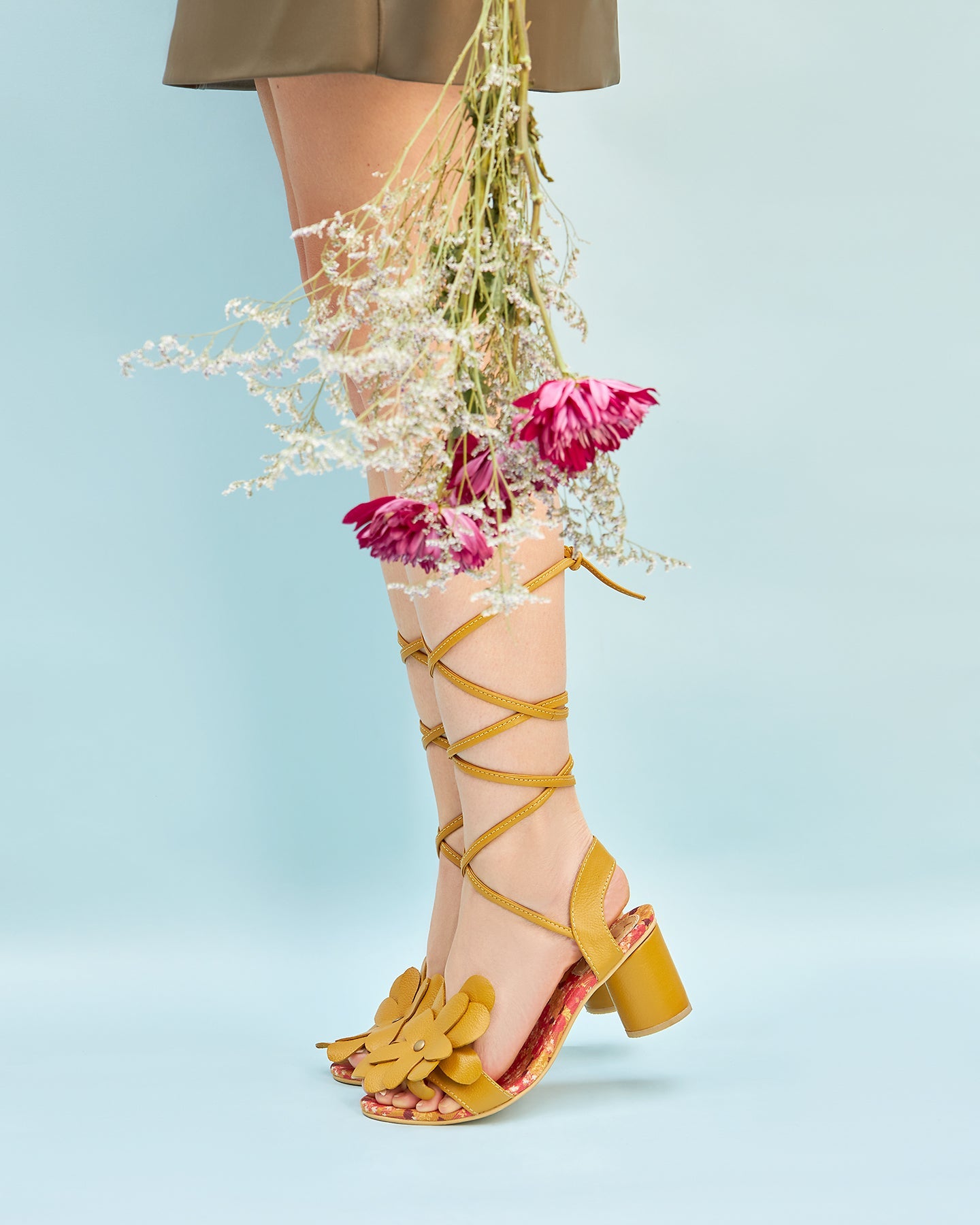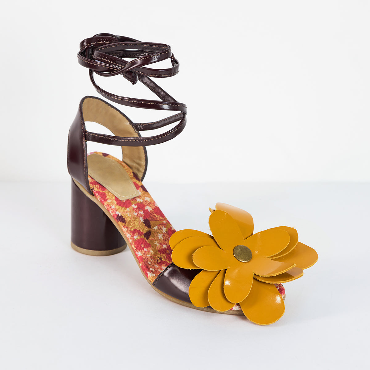 ¡Si señorita! Nuestras sandalias gérbera te permiten jugar con sus flores en colores cálidos que combinen con tus looks favoritos. El principal es el vinotinto. yel secundario el mostaza.