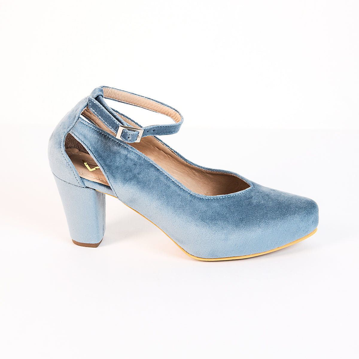 Heels made of nude leather, with a 1cm platform and a square heel to provide comfort during long days.